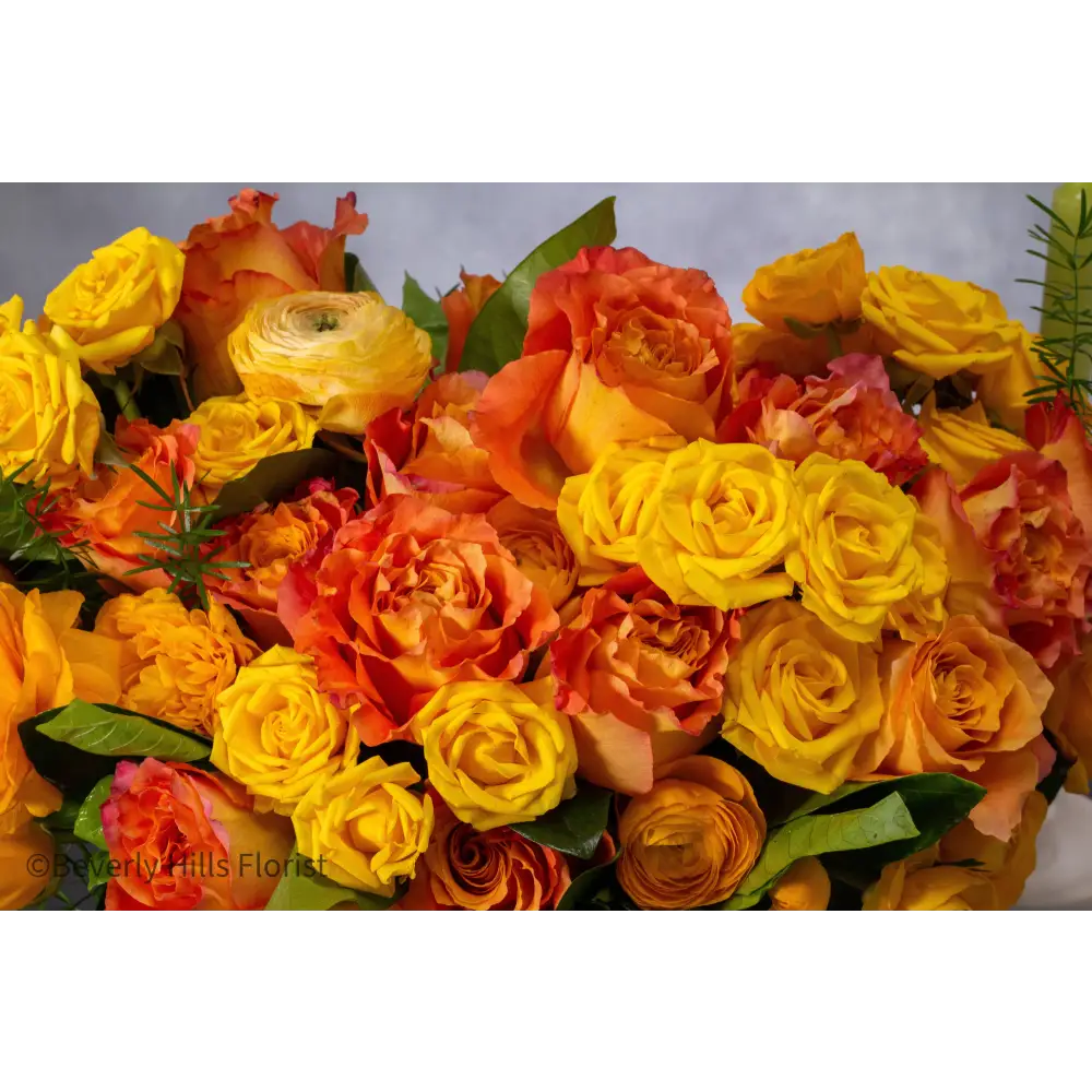 Indulge in the vibrant beauty of our "Citrus Sunset Elegance" arrangement, featuring fresh-cut orange peel-colored blooms arranged in a pristine white ceramic vase. This compact design, approximately 10 inches wide, adds a touch of warmth and sophistication to any space. Perfect for same-day delivery in Beverly Hills and nearby areas, this arrangement is ideal as a thoughtful gesture or a colorful decor accent.