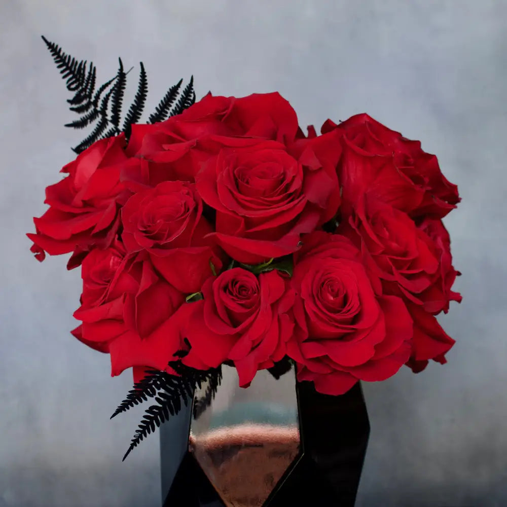 Valentines Day - Deep Red Roses in Geometric Black Vase | Same-Day Delivery