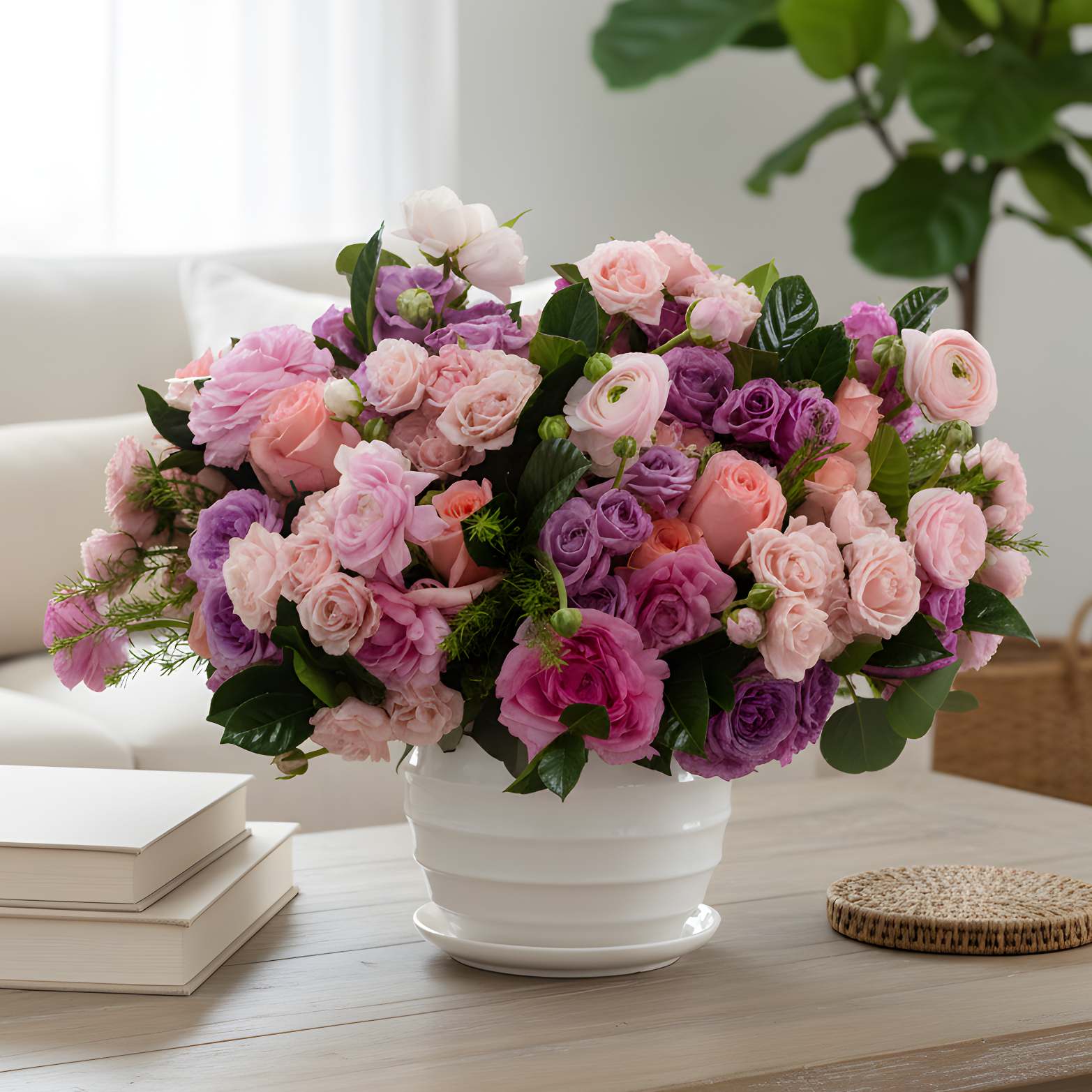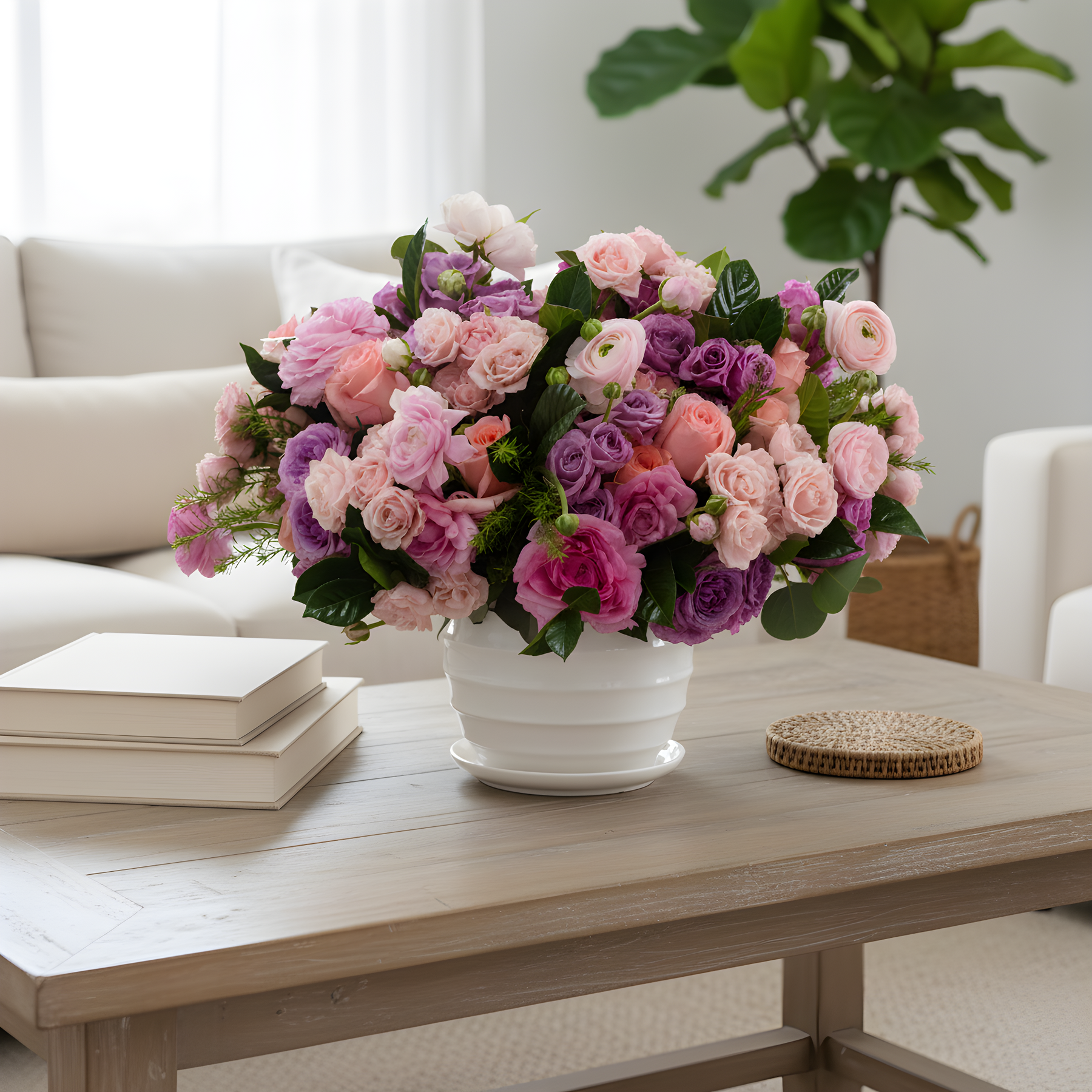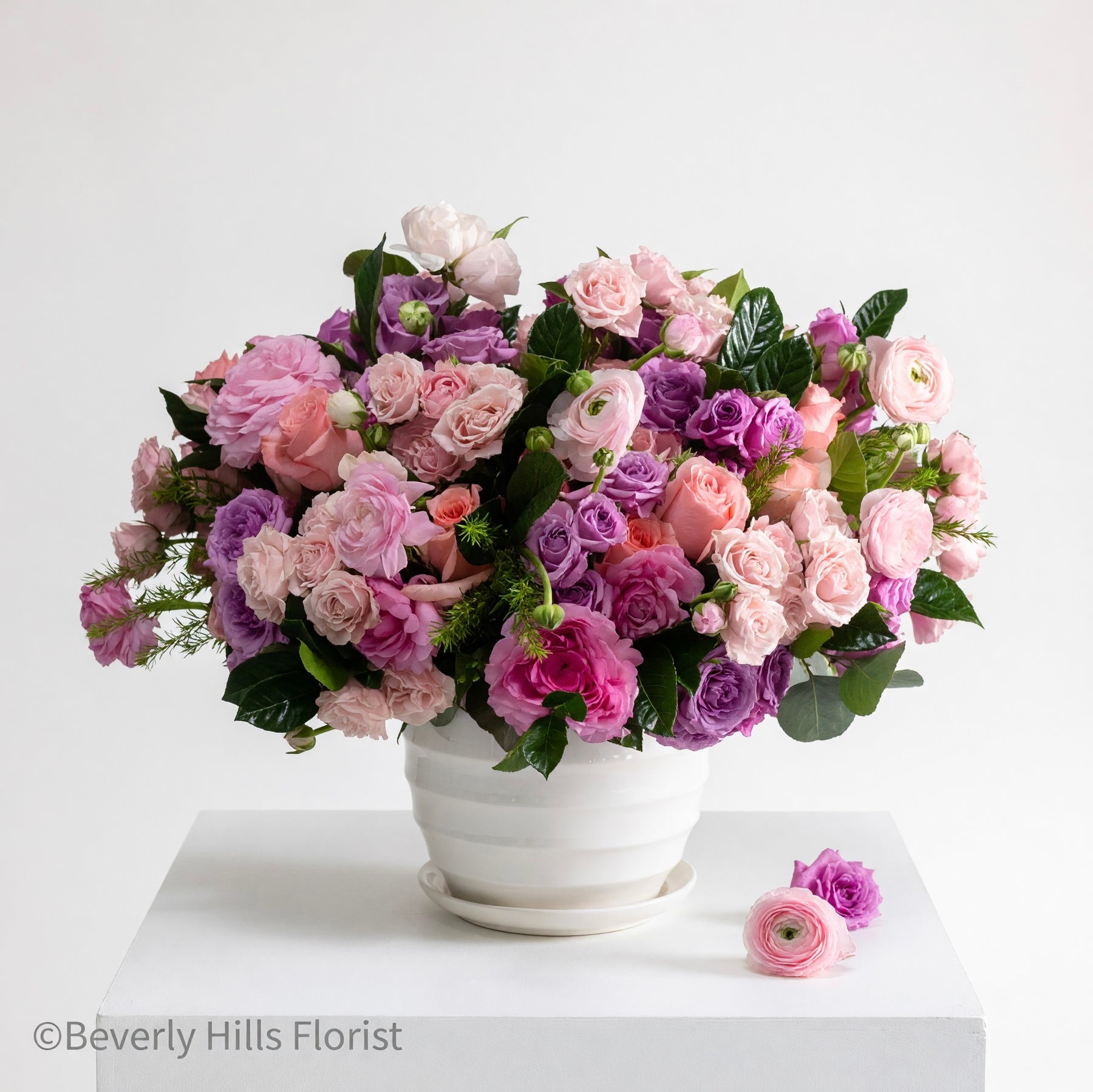 Indulge in the soft embrace of our 'Pink Petal Palette' arrangement. Radiating elegance in every curve, this short round ensemble showcases an array of delicate pink hues, weaving a tapestry of romance and charm. Each bloom, carefully selected for its unique shade, harmonizes effortlessly to create a mesmerizing symphony of color. Perfect for adding a touch of grace to any setting, it's a timeless masterpiece that whispers of love and beauty.
