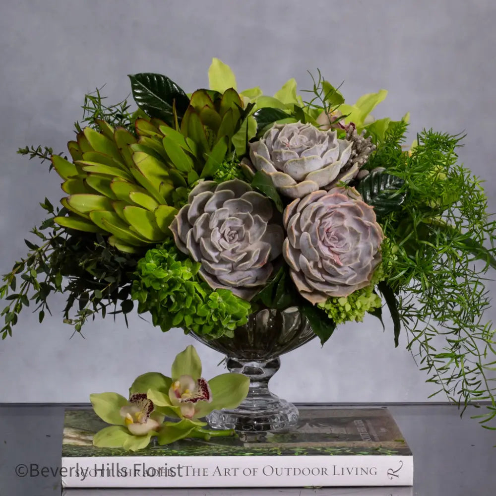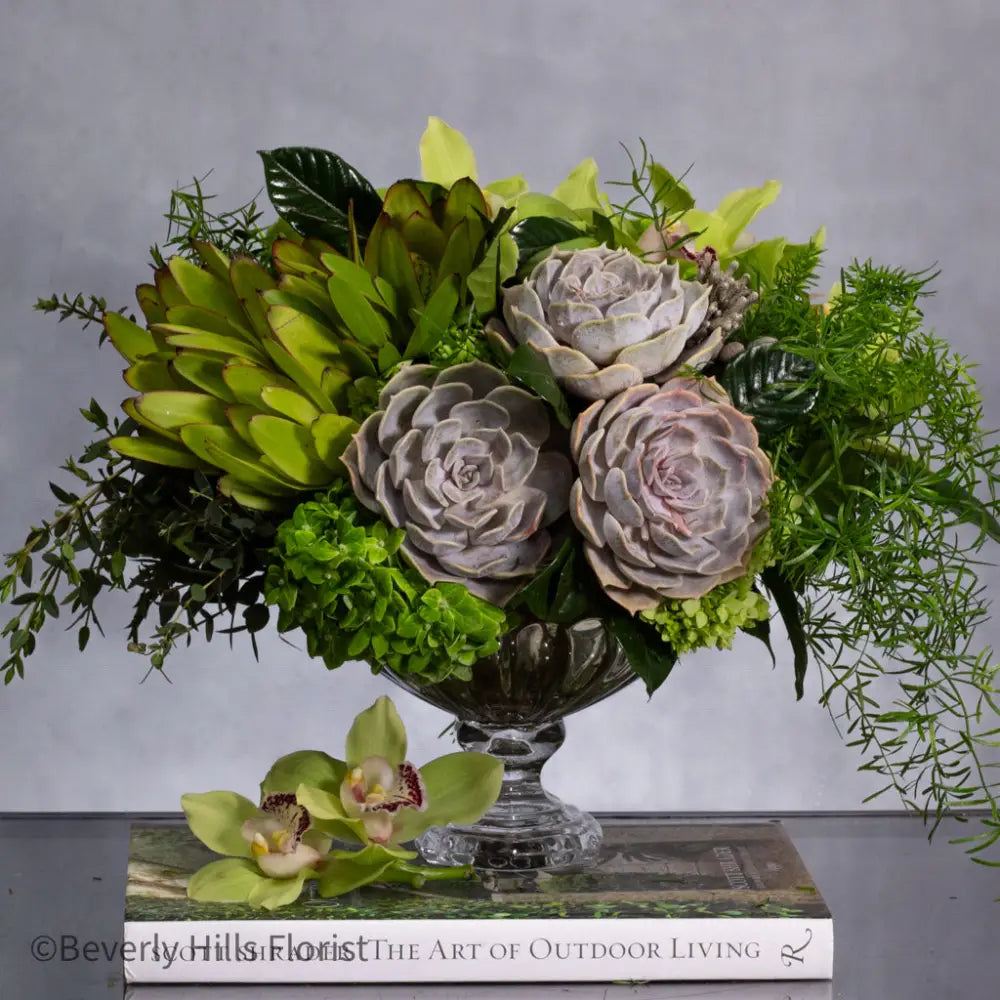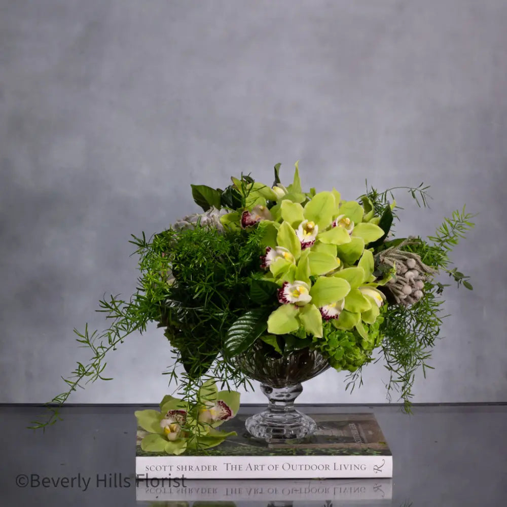 Embark on a journey into the untamed with our 'Safari Splendor' arrangement. Infused with a rugged yet refined masculinity, this wild creation features lush green cymbidium orchids, rugged succulents, and an array of verdant foliage. Each element intertwines to evoke the spirit of the jungle, capturing the essence of adventure and allure. It's a bold statement piece that brings the untamed beauty of the wilderness into any space, commanding attention and igniting the imagination.